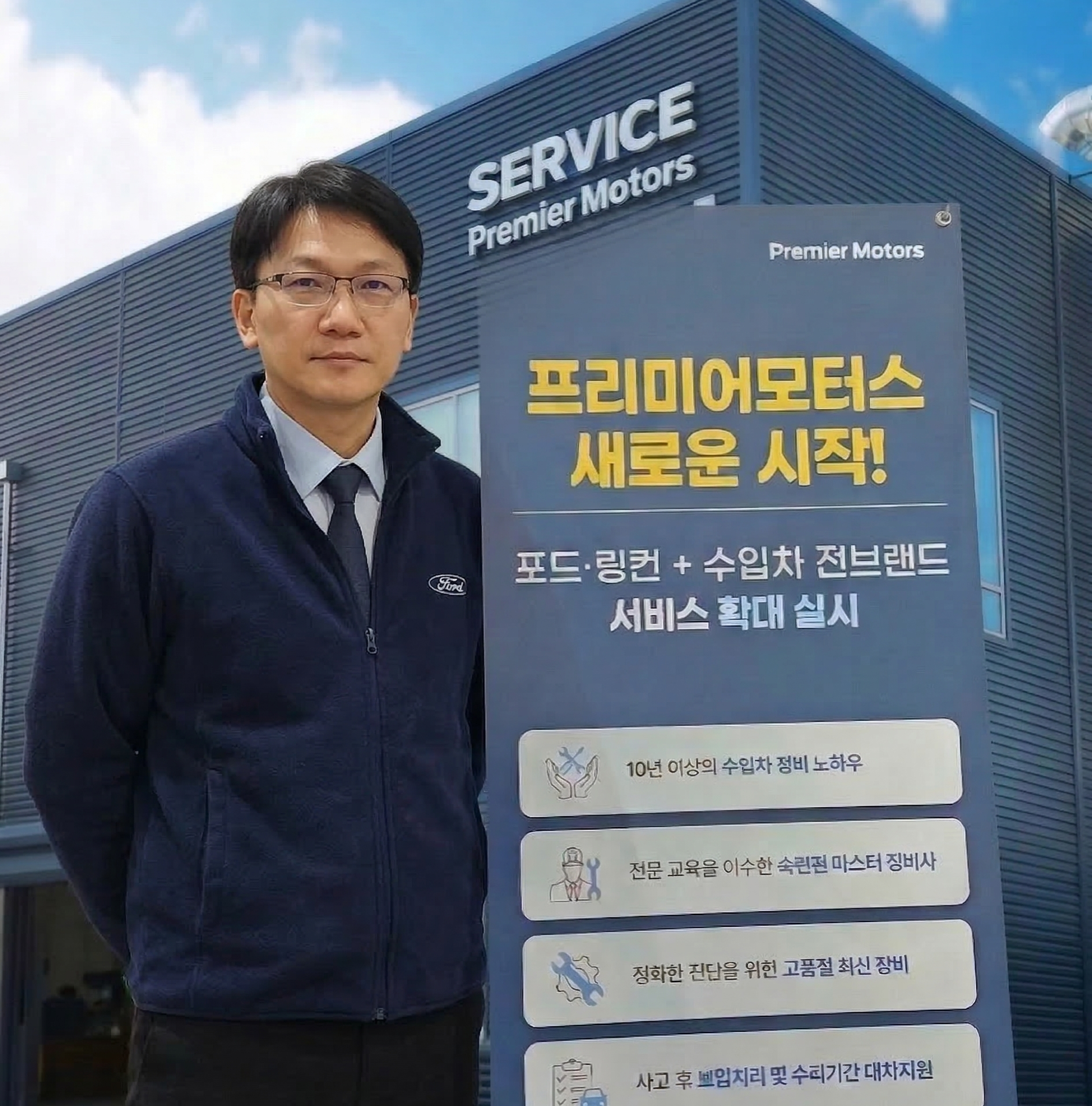 ![]() | "프리미어모터스의 수입차 전 브랜드 정비 서비스 모델, 송파위례가 앞서가겠습니다" 안녕하십니까, 프리미어모터스 송파위례 서비스센터 지점장 정창욱입니다. 저희 프리미어모터스가 그동안 포드·링컨 고객님들께 꾸준히 사랑받아온 저희의 전문적인 정비 노하우를 이제 모든 수입차 고객님께 확대 제공하게 되었습니다. 특정 브랜드에 묶여있던 한계와 경계를 넘어, 강남권과 하남을 아우르는 교통의 요지에서, 활기차고 신나게 고객님을 맞겠습니다. 어떤 브랜드의 수입차를 타시든 안심하고 맡길 수 있는 프리미엄 서비스를 약속드립니다. 감사합니다. |